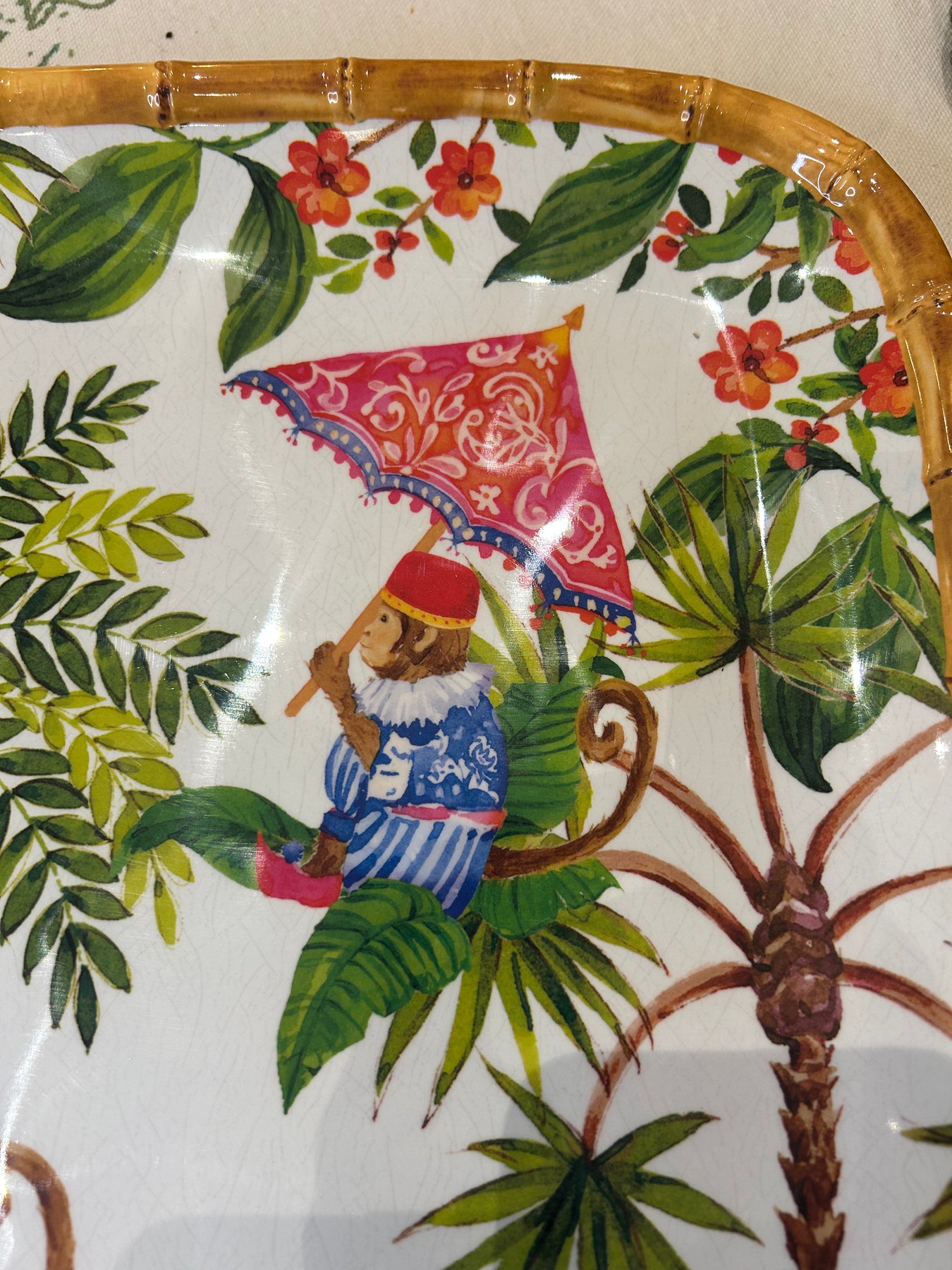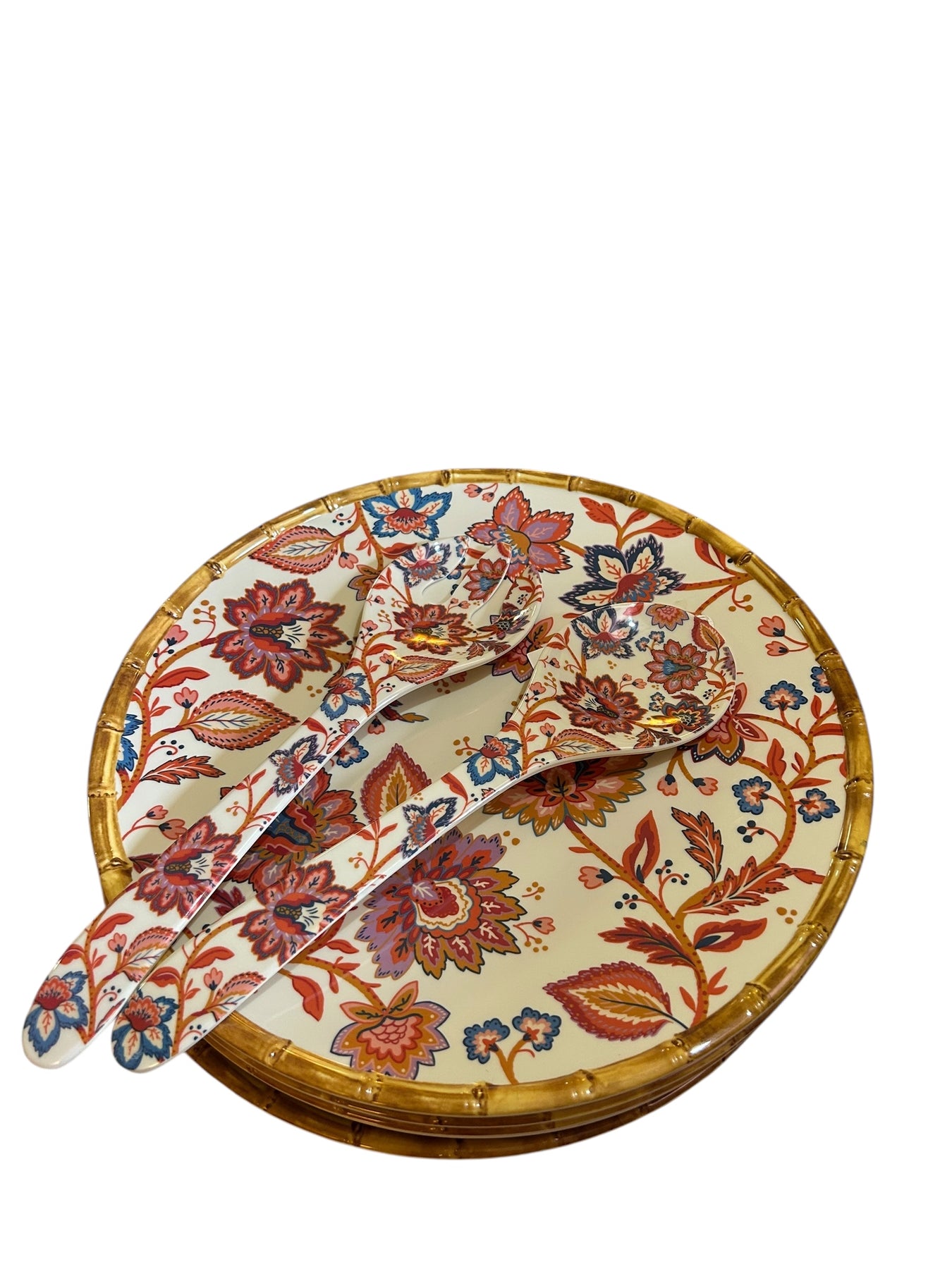 Material: Melamine with a bamboo-style rim